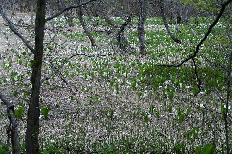 菅沼のミズバショウは他の湿地植物が繁茂する前に開花して住み分けているように見えました。