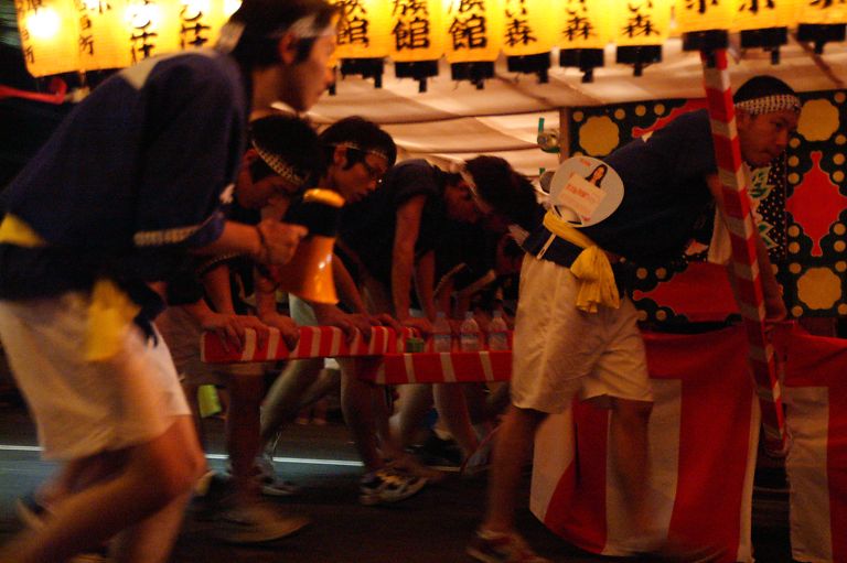 ねぶたを踊らせる縁の下の力持ち。ねぶたの後方。