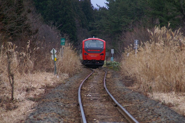 12:04大湊駅発快速「ふるさと下北」が近川駅を通過していきました。