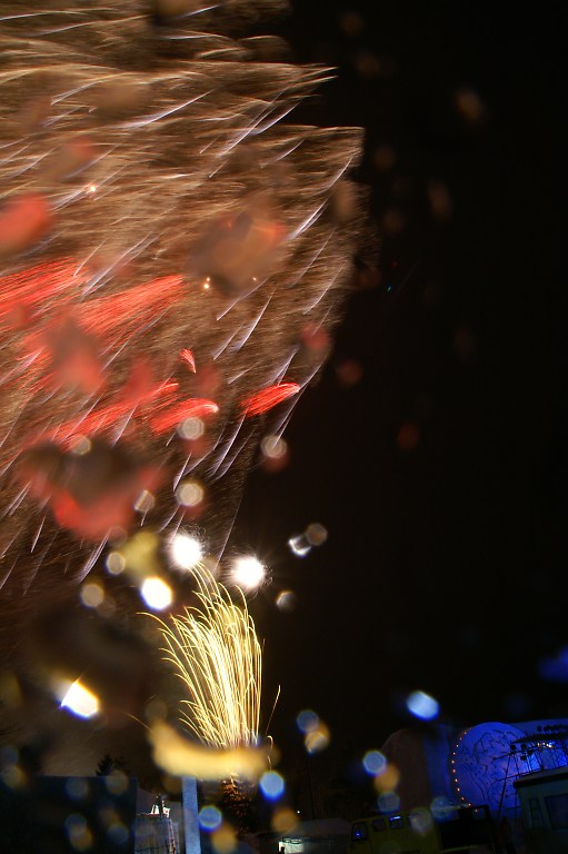 吹雪がますます激しくなって、花火が形にならなくなりました。
