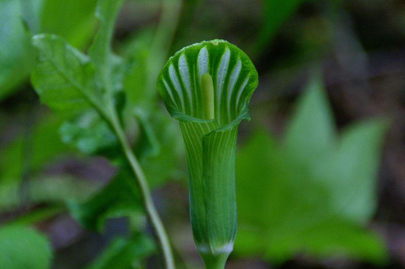 テンナンショウ。仏炎苞の中に見える棒は蕊ではなく付属体と呼ばれるそうだ。植物学者からもあまり愛されていないのか、機械的な呼称だ。