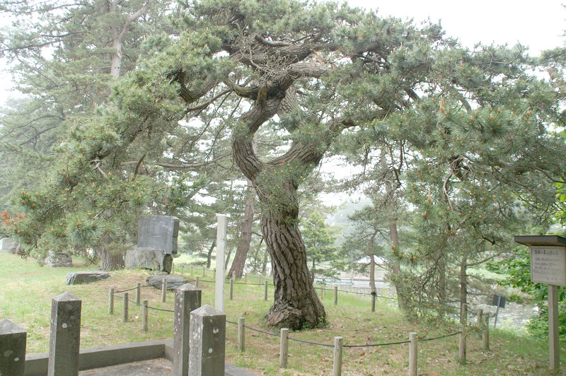 玉松。玉松の玉を拝む石から見ると写真のように枝が丸を描いて見える。