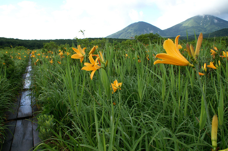 ニッコウキスゲ。雨が止みそうな空模様。