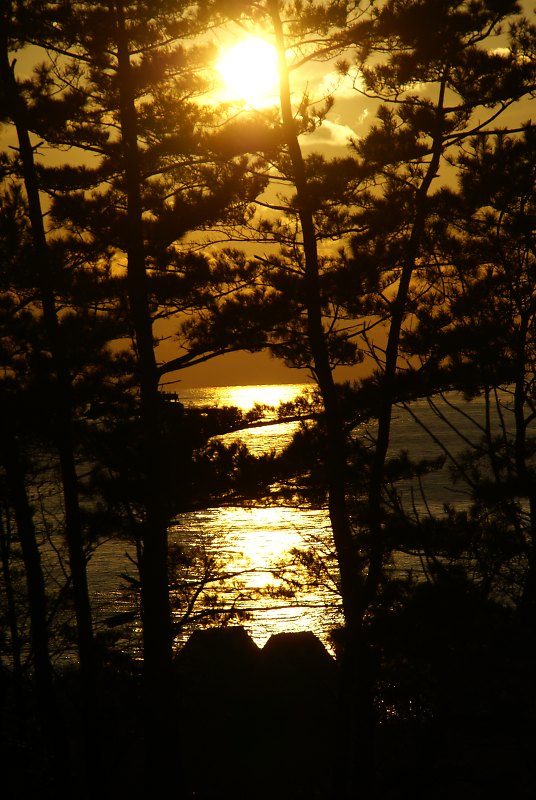 <夕日・漁り火> 青森県深浦町 2007年 12月 22日撮影