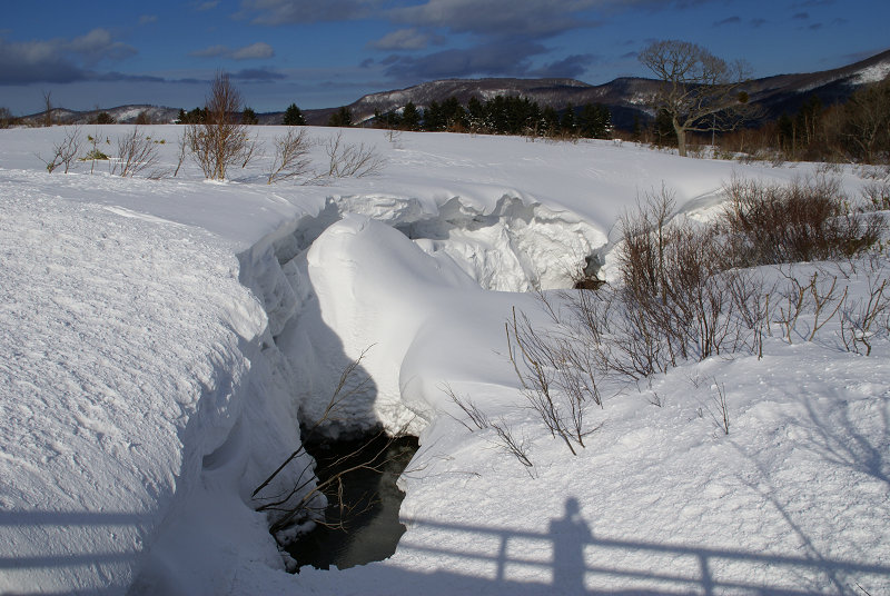 田代平の田代牧場。沢がようやく埋没を逃れていた。