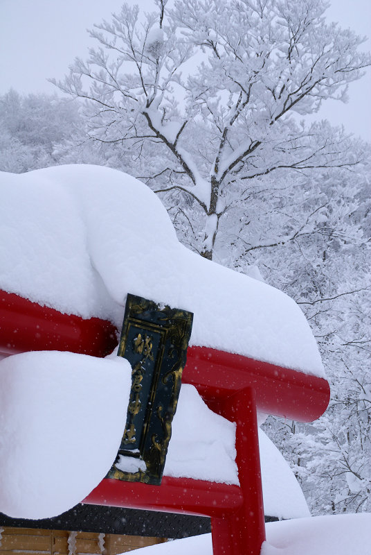 ホテル城ヶ倉の奥に神社があった。赤い鳥居が異彩を放っていた。