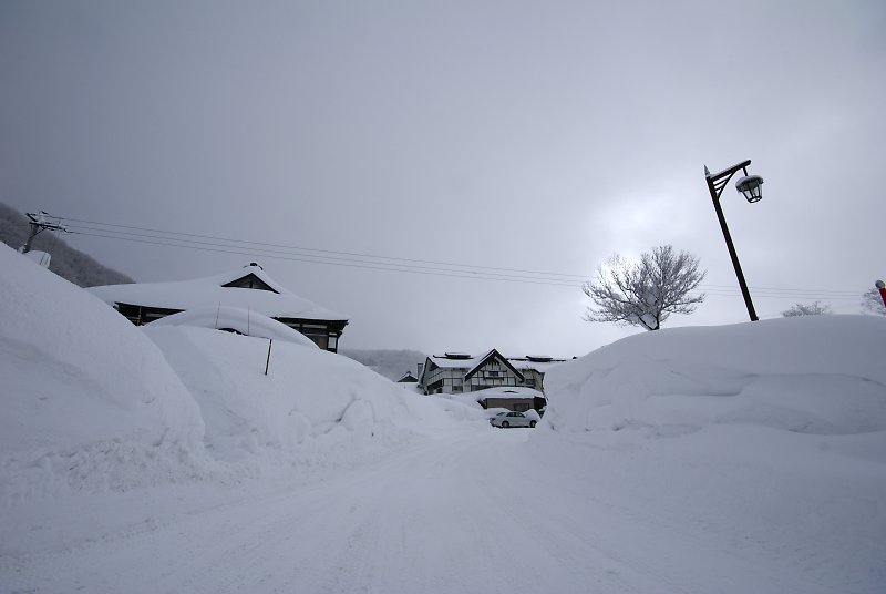 3m以上の雪に埋まる酸ヶ湯温泉。