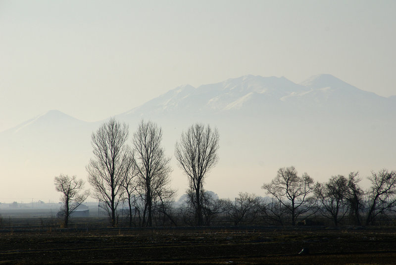 朝のうちは、青森市北西の水田地帯から八甲田山がやや霞んで見えた。