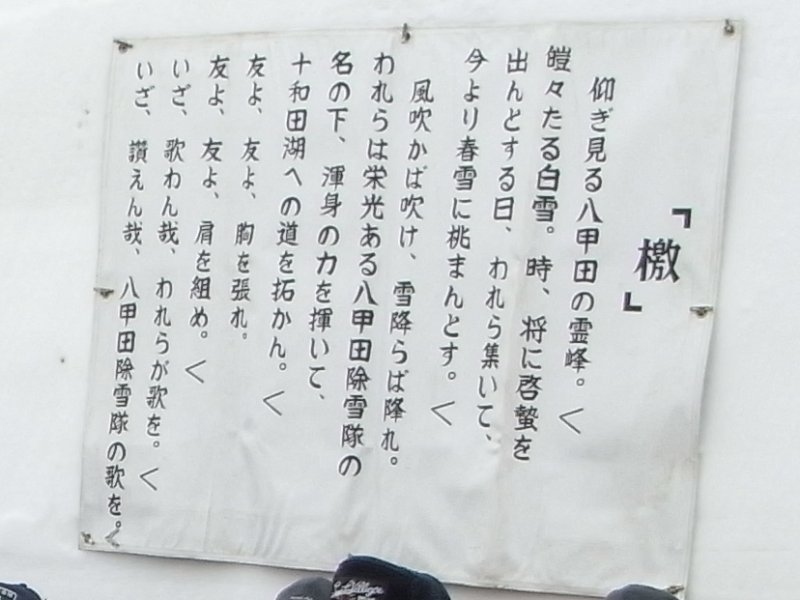 雪壁に張り出された「檄文」。