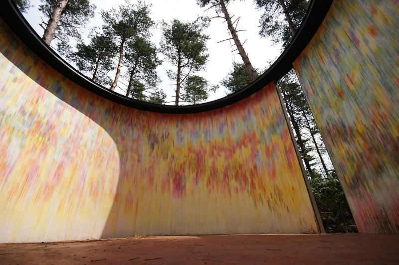 森の中に虹色の壁。