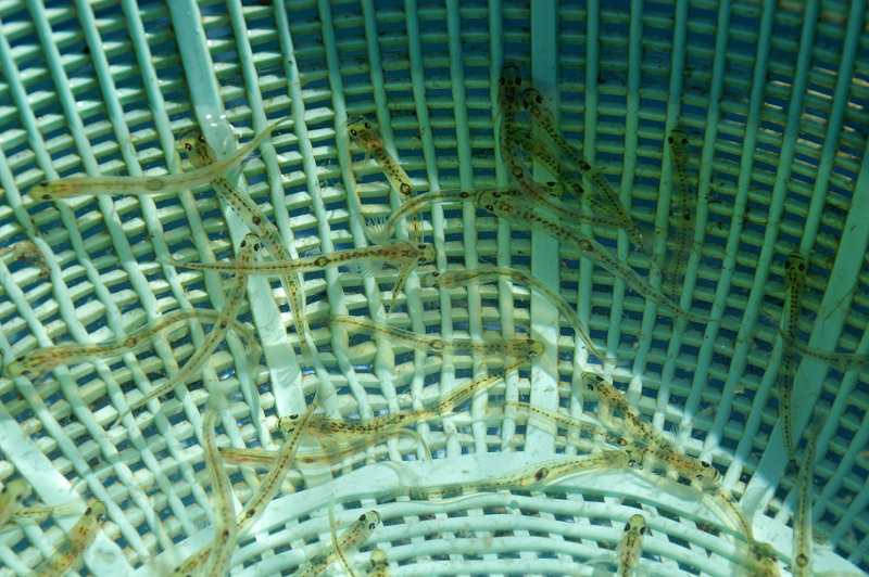 ざるの中で泳ぐしろうお。