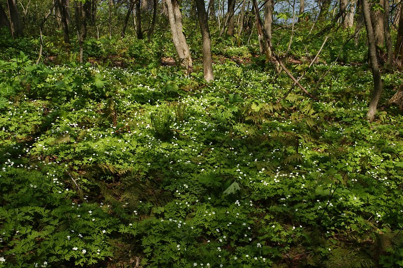 十和田湖西岸の林内にはニリンソウが咲き誇る。