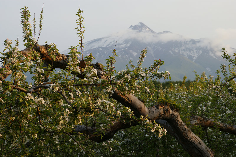 りんごの樹と岩木山。