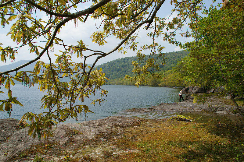 十和田湖東岸の小畳石付近。ミズナラの花と新緑。