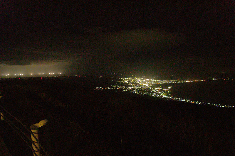 釜臥山から見る夜景。むつ市の灯りと大畑沖の漁り火が近くに見えている。