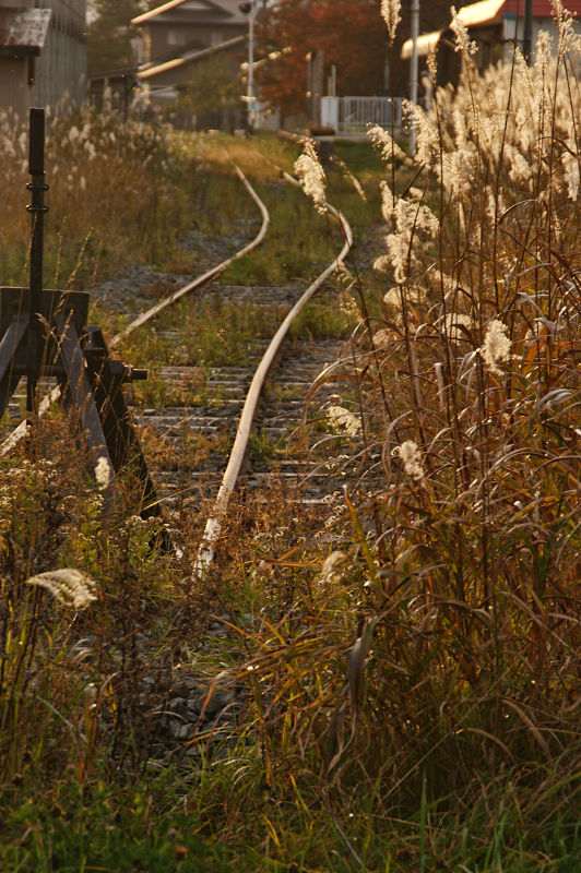 廃線となった下北交通大畑線の鉄路が一部残されていた。