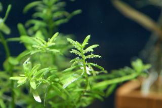 ■ADA製の小型の鉢にグリーンロターラを10本ずつ、化粧鉢にアルテルナンテラ・レインキーを5本植えました。 水換えをするとグリーンロターラに気泡が付いて綺麗ですが・・・。 |