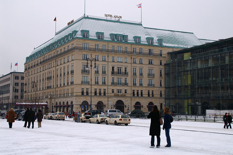 ドイツの超高級ホテル ADLON。緑色の屋根が美しい。ブランデンブルク門の前にある。