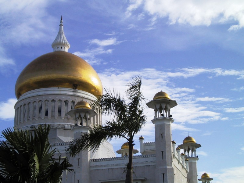 ■サルタン・オマール・シャイフディン・モスク。青い空に黄金色のドームが綺麗です。
