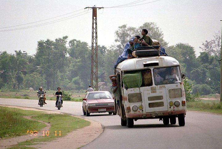■窓から荷物がはみ出し、ドアから人がはみ出し、屋根には何でも乗っています。