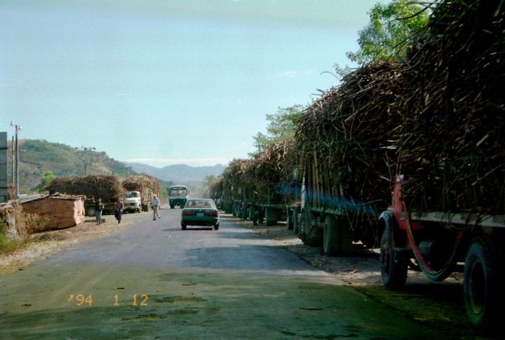 サトウキビを満載したトラック軍団が路側に居並んでいました。