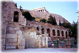 | ■イロド・アティコス音楽堂では何かリハーサルが行われているようでした。年月を感じさせる露出した石積みアーチは、どんな演目をも受け入れてきた時代の生き証人のようでもあります。 |
