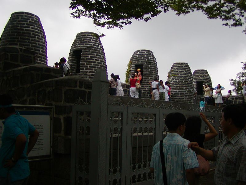 ■烽燧台(ボンスデ)。のろしを焚くための釜戸のようなものが5つ並んでおり、敵が攻めてきた時には5つ全部に火が入って、急を告げたそうです。