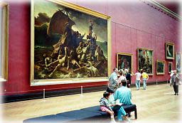 | ■ルーブル美術館では展示物や建物にも圧倒されました。展示物には触ろうと思えば触れる状態で展示されている姿に敬服しました。日本では額縁にガラスが嵌め込まれるなどしているため、ガラス面の反射を気にしながらの鑑賞となります。ルーブルでは油彩を直接見ることが出来ました。模写する学生も居て、名作のすぐ側にイーゼルを立てて絵の具を調合している姿には驚きました。 |