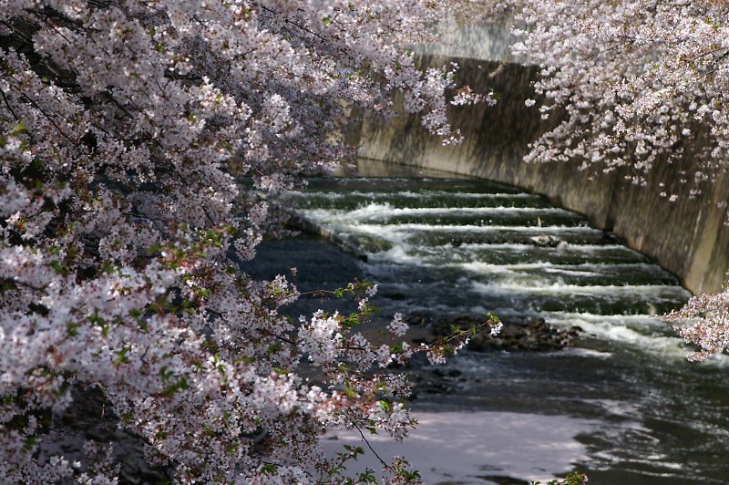 曙橋の上流側には魚道が造られています。昔は大きな落差工がありました。