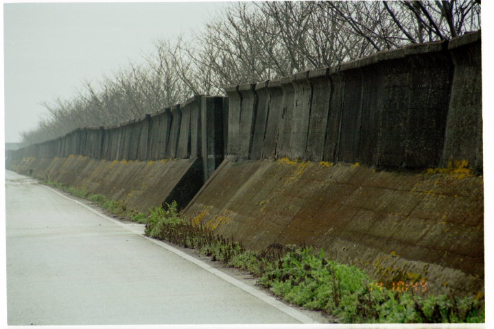 潟が軟弱地盤のためか、荒波を受け止めてきたためか、壁が波打っています。