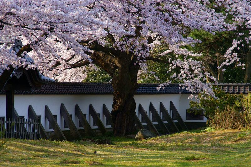 金沢城 狭間が並ぶ築地塀と桜