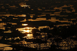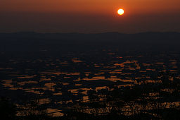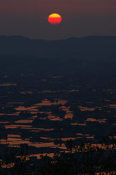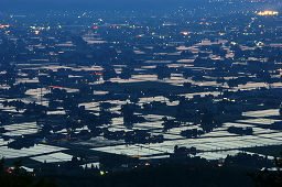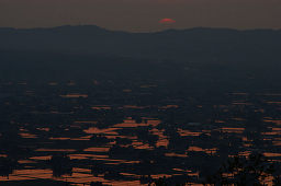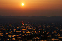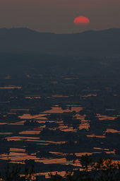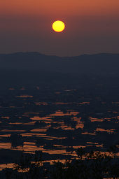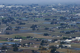 | ■代かきが進む散居村の眺望 富山県砺波平野の散居村 |