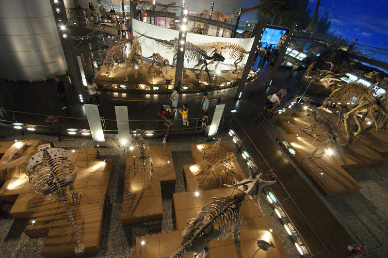 2階から1階を眺める。ヨロイ竜類や角竜類が見える
