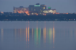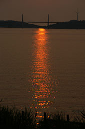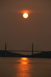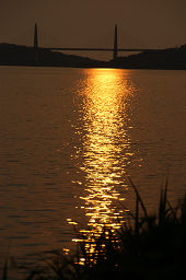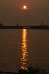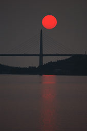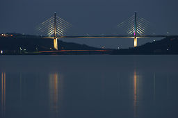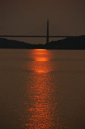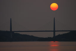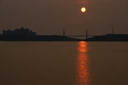 | ■河北潟放水路に架かる斜張橋は「サンセットブリッジ内灘」という。 ■夕日が斜張橋の向こうに沈む瞬間を捉えようと、河北潟の堤防をウロウロしながら撮影した。 ■夕日の色合いと水面のきらめきが微妙に変化していくので、多めの画像を掲載した。 ■日没後、しばらく経つと金沢医科大の建物が河北潟の水面に映えてきた。 ■よく見ると、サンセットブリッジ内灘もライトアップされていた。 |