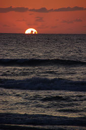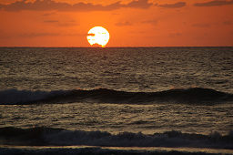 ■日没時には、思い思いに渚に停車して眺めるも良し、潮風に吹かれて走りながら眺めるも良し。