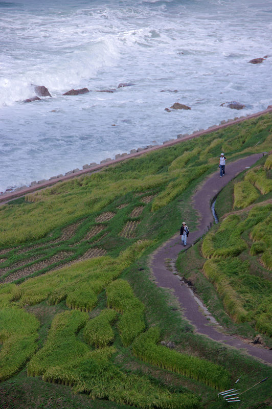 白く泡立つ海と千枚田 2009/9/13