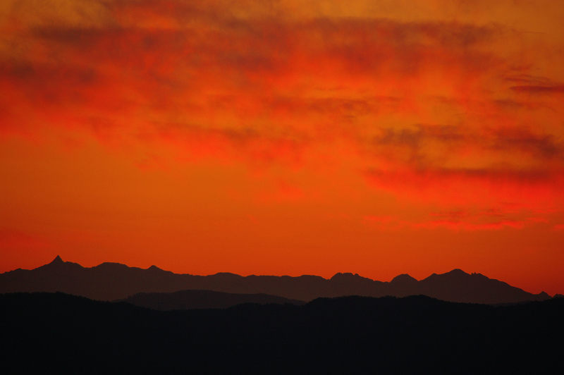 槍ヶ岳のシルエット 石川県金沢市夕霧峠より 2009/11/7