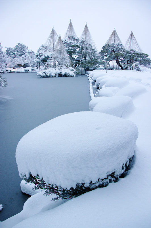 霞ヶ池と唐崎松雪吊り。朝7時10分。