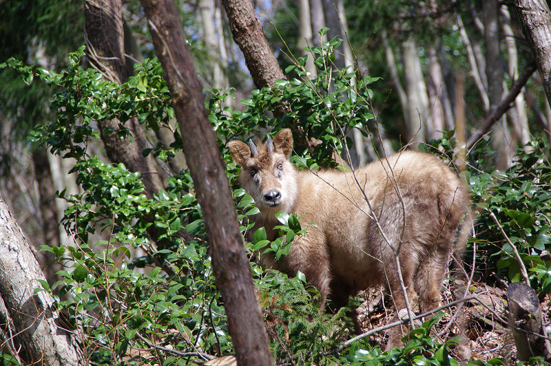倉ヶ岳で出会ったニホンカモシカ。ペアで陽だまりでうずくまっていた。