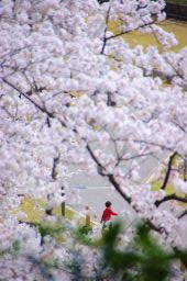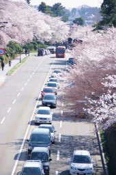 ■兼六園周辺では、金沢城との間のお堀通りに面して桜が贅を競っている。