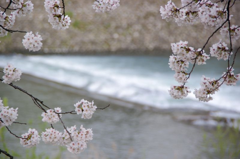 犀川の落差工と桜