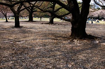 ソメイヨシノの花びらが散り敷いていました。