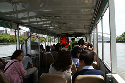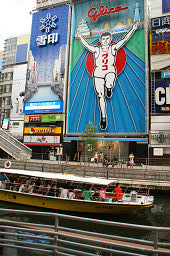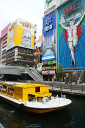 | ■道頓堀川に遊覧船が就航していて吃驚した! ■30年以上前には道頓堀川とは呼んでいたが、川面を見下ろしたり川面から両岸を眺めるなどということは考えられなかった。 |