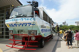 | ■日本では唯一の水陸両用観光バスというものに乗ってみた。 ■大阪ダックツアー!大阪ならではのおしゃべりガイドつき!と、水陸両用観光バス自体が大阪名物動く観光名所だそうだ。 ■たくましい大阪の商魂を体感した。 |