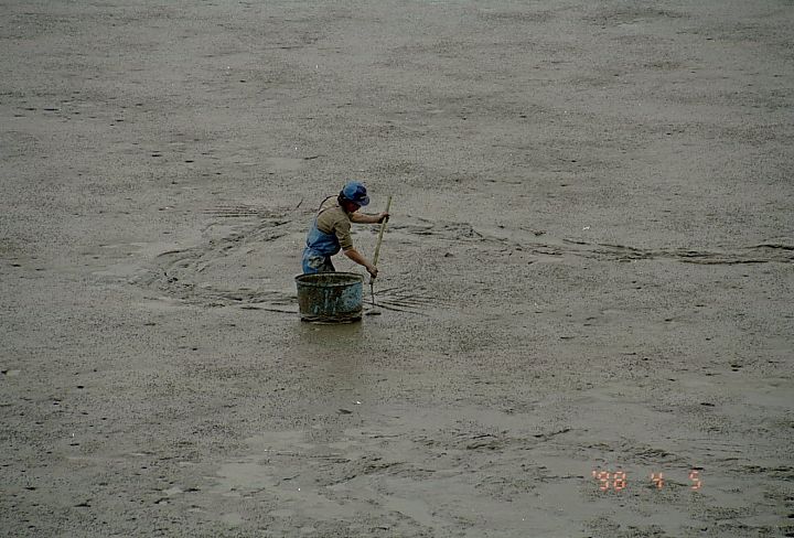 ■スボカキ漁 漁師さんの前に「シャッ、シャッ」と掻いた痕がが付いています。
